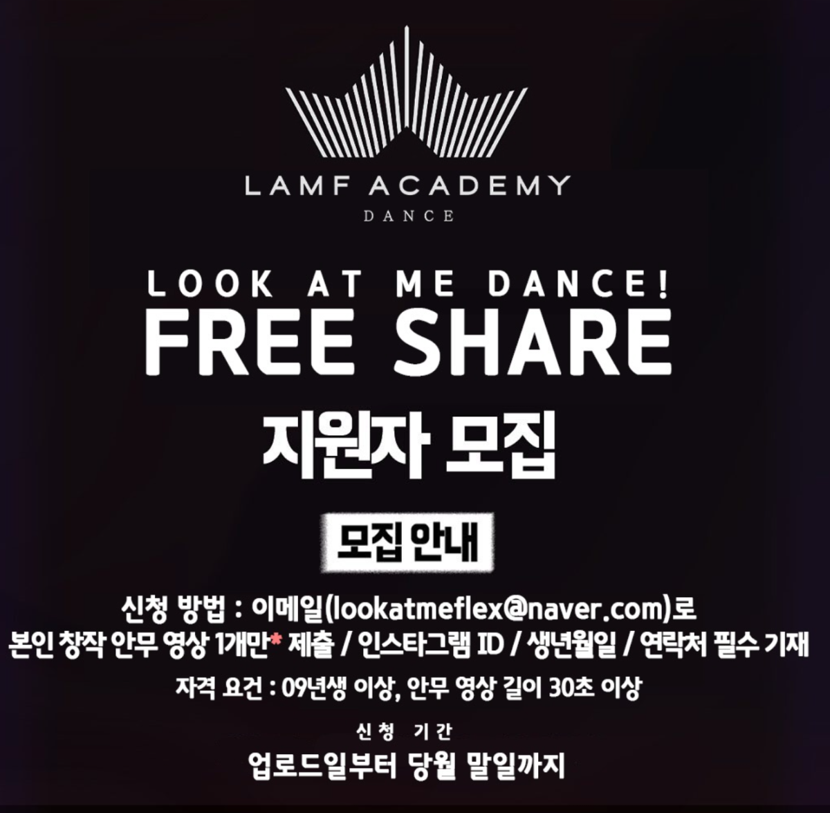 [구인구직] [프리쉐어 지원자 모집] LOOK AT ME DANCE : FREE SHARE